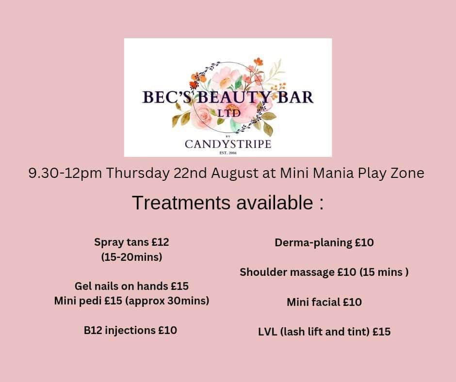 Come and join us @ Bec’s Beauty Bar for our Monthly (evening) pamper sessions with a different theme. The first one in August was focused around TROPIC skincare. For just £10 our VIP guests received a glass of Prosecco, nibbles, entry into our prize draw worth over £150, a mini facial and a choice of half-price mini treatments!